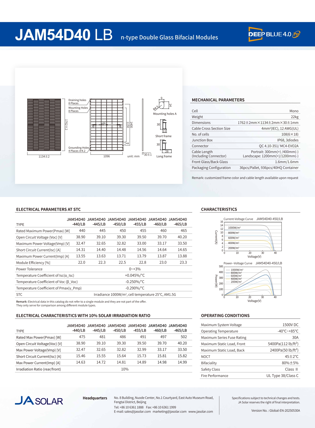 Maximieren Sie Ihren Ertrag mit der Innovationskraft von JA Solar (JAM54D40-460/LB-LRF).